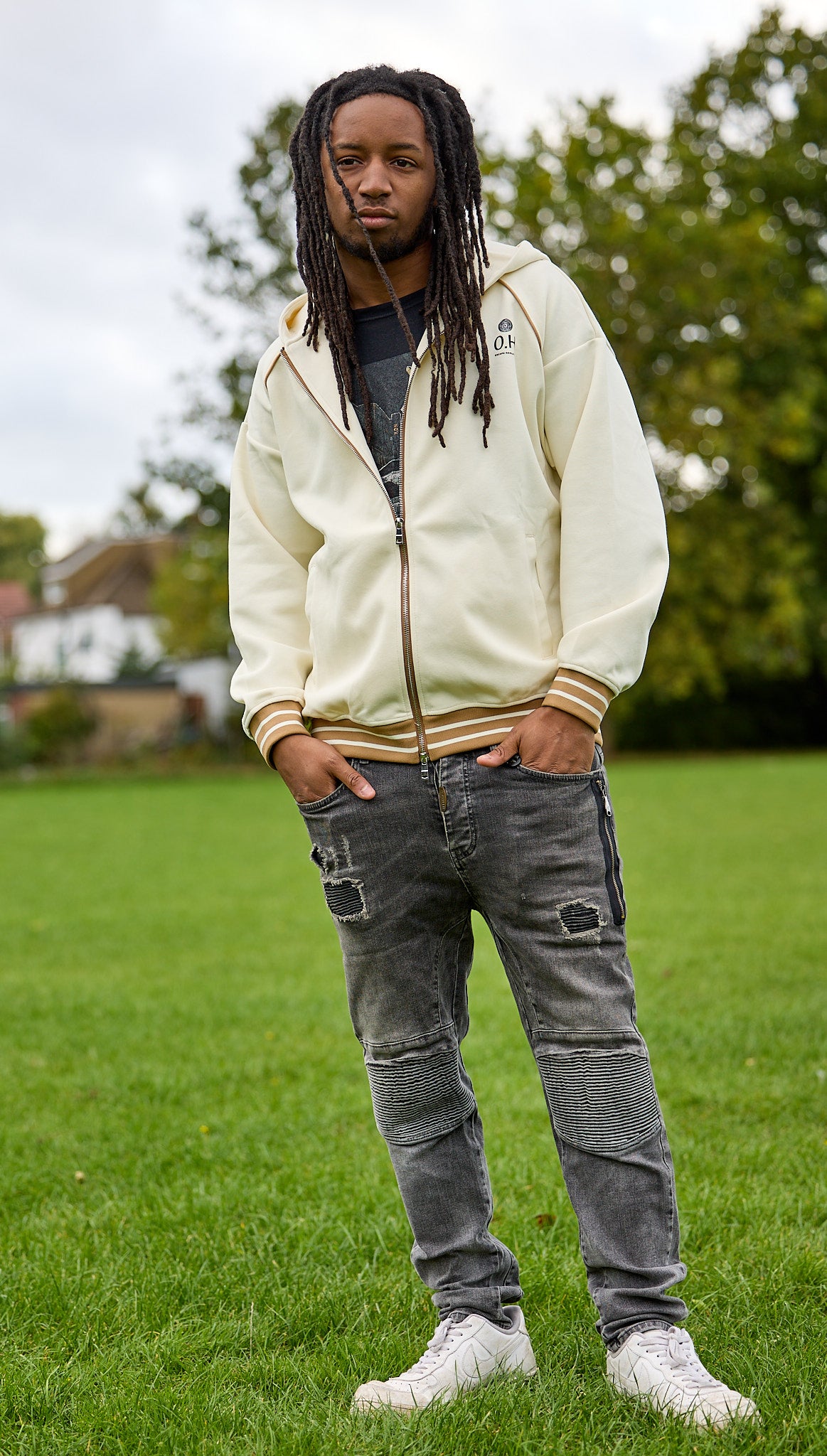 Striped Trim Zip-Up Hoodie "Made of we"